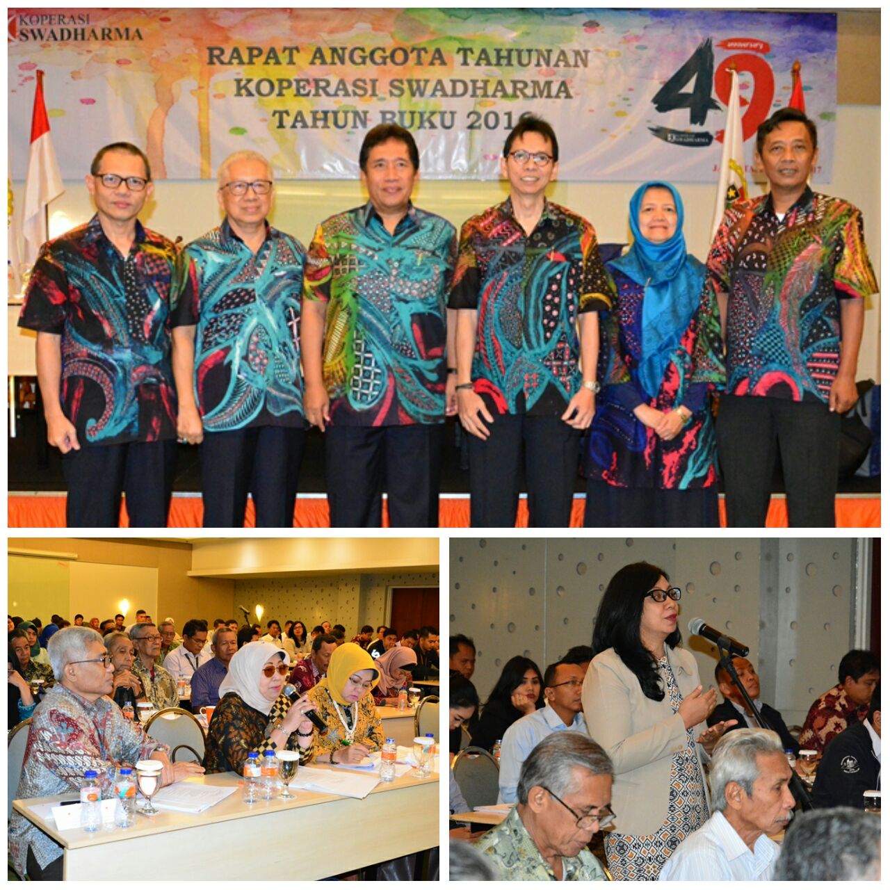 Pada hari Rabu, tanggal 22 Maret 2017, bertempat di Hotel Harris, Tebet -Jakarta Selatan, telah diadakan rapat anggota tahunan (RAT) Koperasi Swadharma Jakarta, untuk tahun buku 2016, yang dihadiri oleh 107 (seratus tujuh) anggota. Dengan mekanisme kehadiran satu orang anggota mewakili seratus anggota, maka rapat anggota tahunan tersebut telah mewakili 10.700 anggota (88,90%), yang berarti kuorum telah terpenuhi.