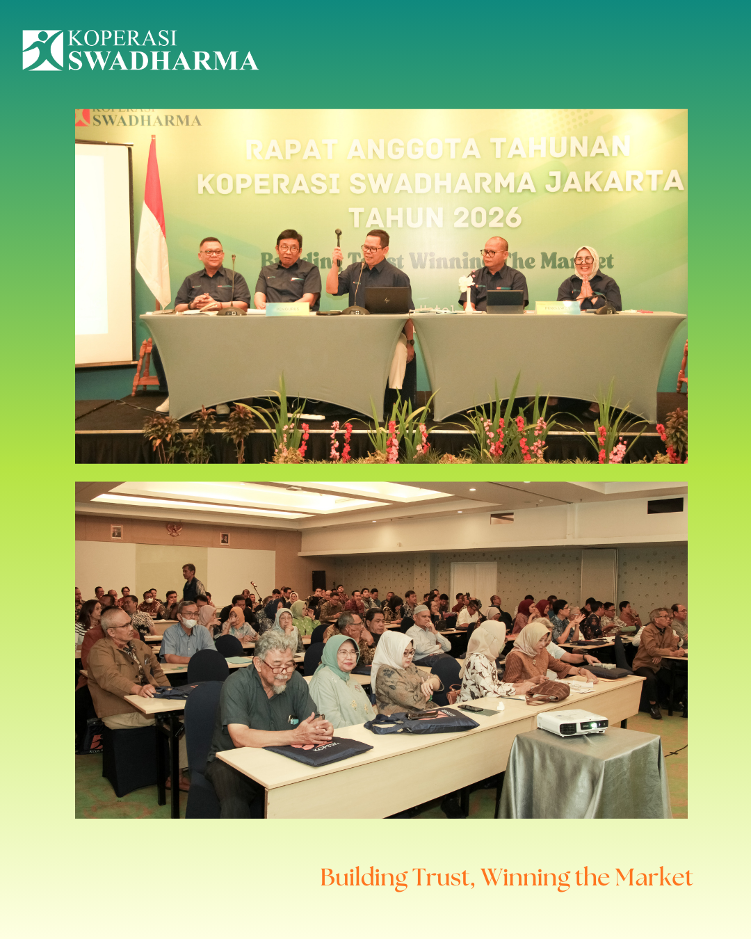 Rapat Anggota Tahunan Koperasi Swadharma tahun buku 2025 telah sukses dilaksanakan pada tanggal 26 Februari 2026 sebagai wujud transparansi, akuntabilitas, dan komitmen bersama dalam memajukan Koperasi Swadharma.