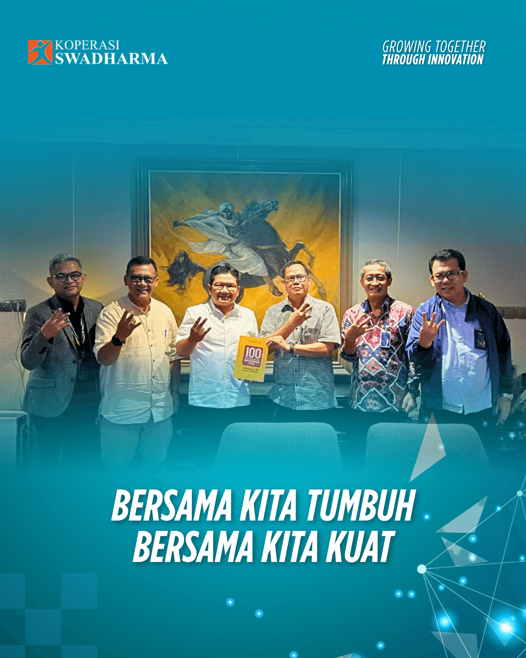 Sebagai bentuk apresiasi kepada Manajemen, Pegawai dan Pensiunan di lingkungan BNI, Koperasi Swadharma, selaku koperasi pegawai dan pensiunan BNI, melalui Ketua Pengurus Bpk Heryadi dan Sekretaris Bpk Iswahyudi menyampaikan buku "100 Koperasi Besar di Indonesia tahun 2025", kepada Bpk Munadi Herlambang Direktur Human Capital dan Compliance yang didampingi GM HCE Bpk Afthon Sodaq Noor, Bpk Alfri Hamonangan Ketua Umum SP BNI serta Bpk Donny Mustafa Ketua Pengawas Koperasi Swadharma.