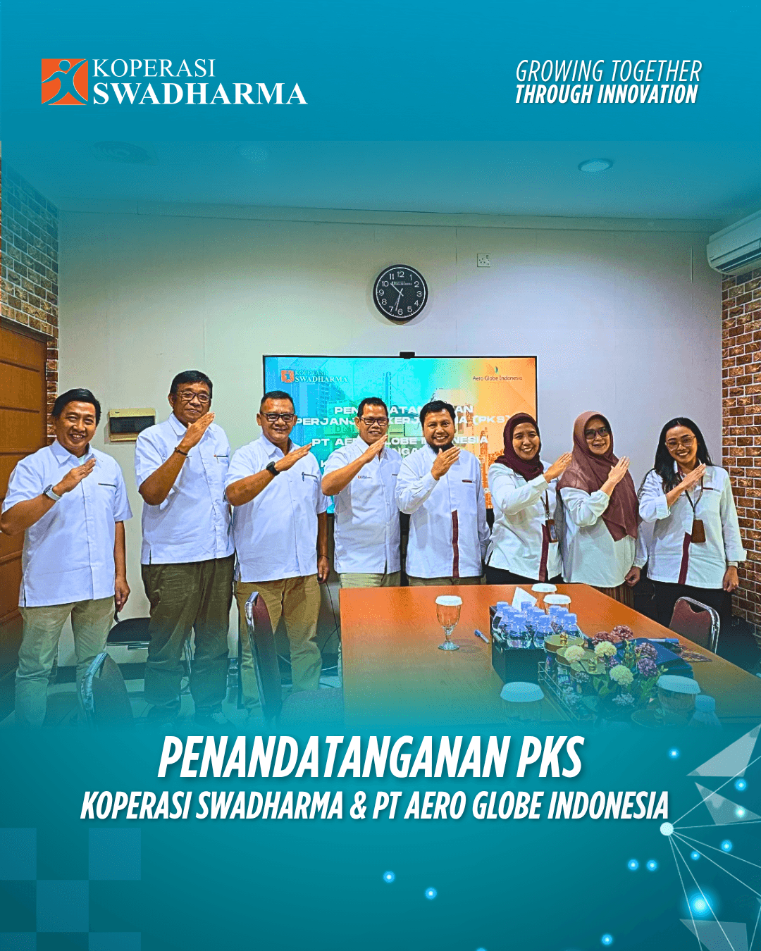 Pada tanggal 4 Agustus 2025, Koperasi Swadharma menandatangani perjanjian kerja sama dengan PT Aero Globe Indonesia, anak perusahaan dari Garuda Indonesia yang bergerak di bidang layanan perjalanan dan manajemen perjalanan korporasi.